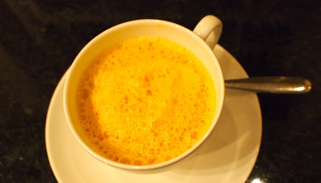 Just as a point of clarification, this isn't technically a bisque, as bisque traditionally denotes that some of the shell has been ground into the soup, and this obviously gives you the slightly grainy texture you sometimes have. That said, it's the perfect way to use up the leftover lobster shells from the lobster and scallop ravioli.